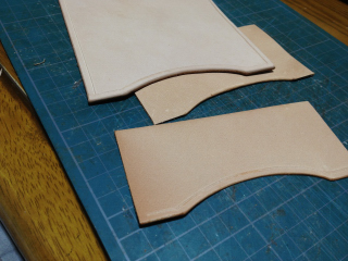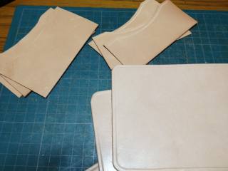 この後は、形に貼り合わせて、縫い穴を打ち、実際の縫い作業となりますが、