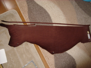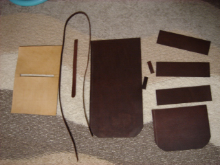 折り線をつけたマチ用の革を塗らして折りたたみます。