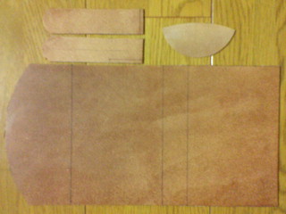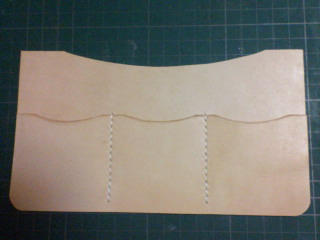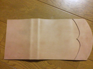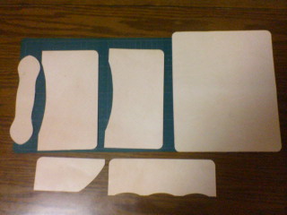 切り出した革の、裏処理とコバの処理(磨きはまだ)をしてから