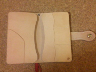 型を決めて、カシメで結合すれば、携帯電話ケースになります。