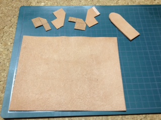 型どりしたものを切り出しましたが、持っている革の関係でkobo gloを取り付ける土台部分と、