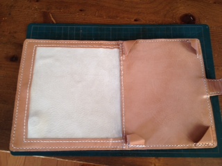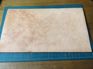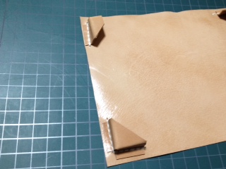 本体の外側用に、新たに2.5mm厚のサドルレザーを購入してきましたので、出来上がった本体内側に