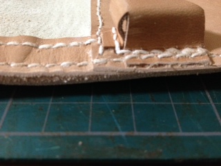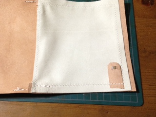 あとは、ケースを閉じるためのベロは裏に薄い革を貼りつけて