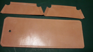 切り出した革の、裏処理とコバの処理(磨きはまだ)をしてから